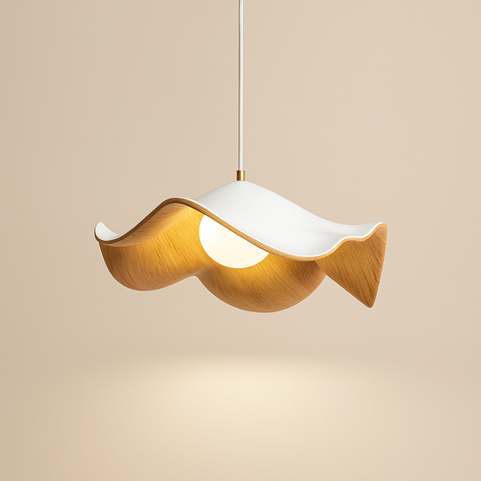 ElementBois – Suspension en Résine & Métal – Plafonnier Design Lotus Naturel