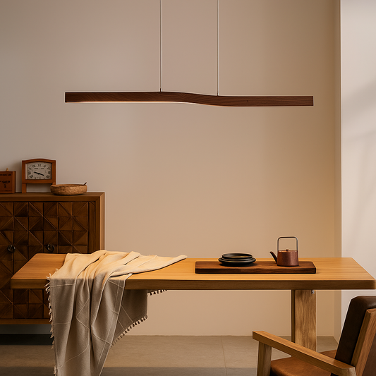 Noyara – Suspension en Bois Foncé Style Japandi | LED Intégrée | 100–120 cm