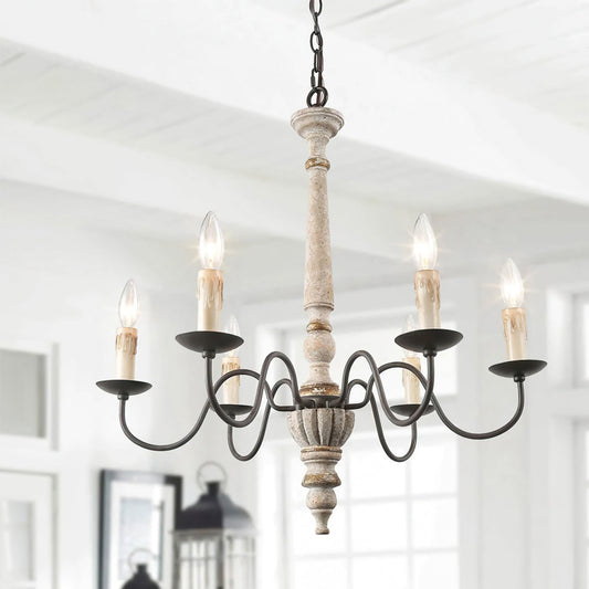 AvignonLustre – Lustre Rustique en Bois & Métal | 6 Ampoules Style Bougie