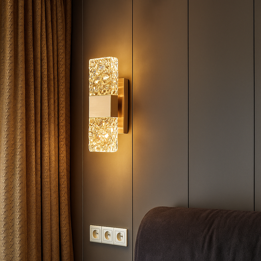 CRISTALLIA – Applique Murale en Cristal Doré | LED Intégrée | Style Nordique | Métal & Cristal | Éclairage Ambiant