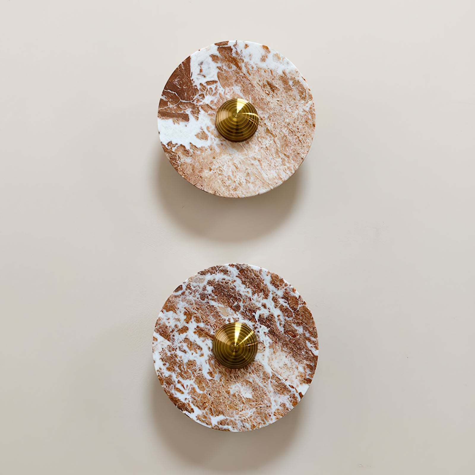 Aurora – Applique Murale Ronde en Marbre Marron | LED Intégrée | Design Moderne de Luxe