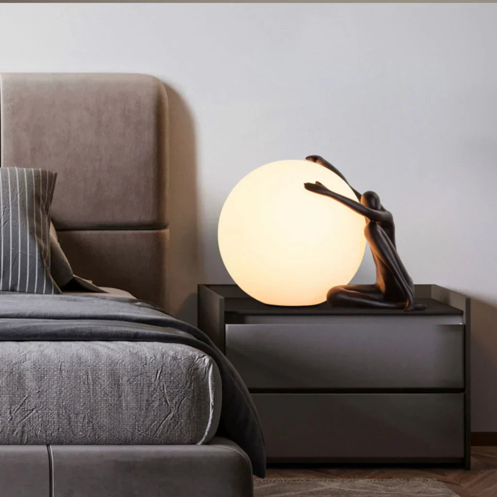 Cette lampe singulière marie un design humanoïde créatif à une lumière LED moderne, diffusée à travers un globe de verre opalin. Fabriquée en résine résistante, elle est conçue pour attirer tous les regards dans un salon audacieux, une chambre élégante ou un bureau design.