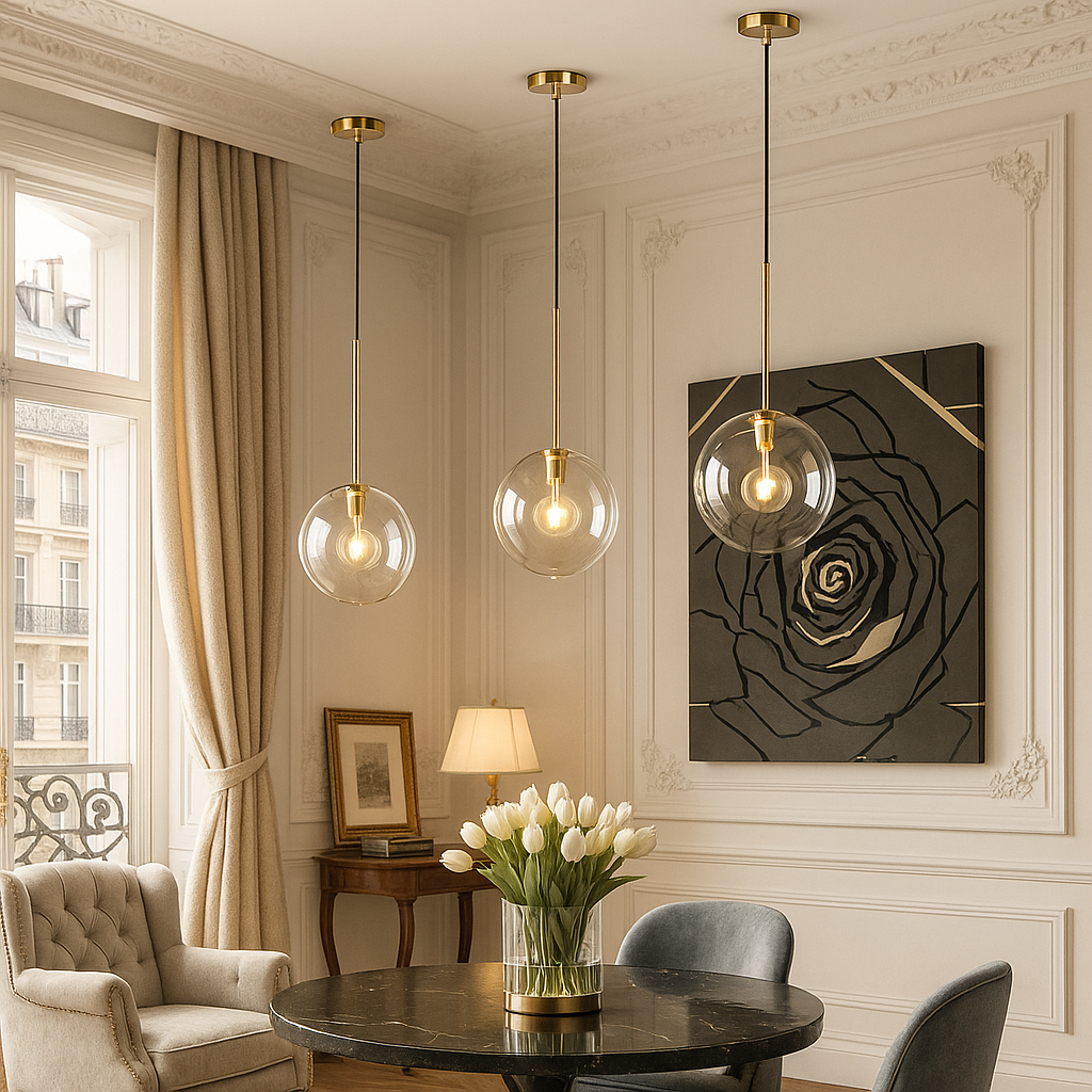 Lumière Ambiante Chaleureuse : Le globe en verre transparent diffuse une lumière douce et accueillante.
