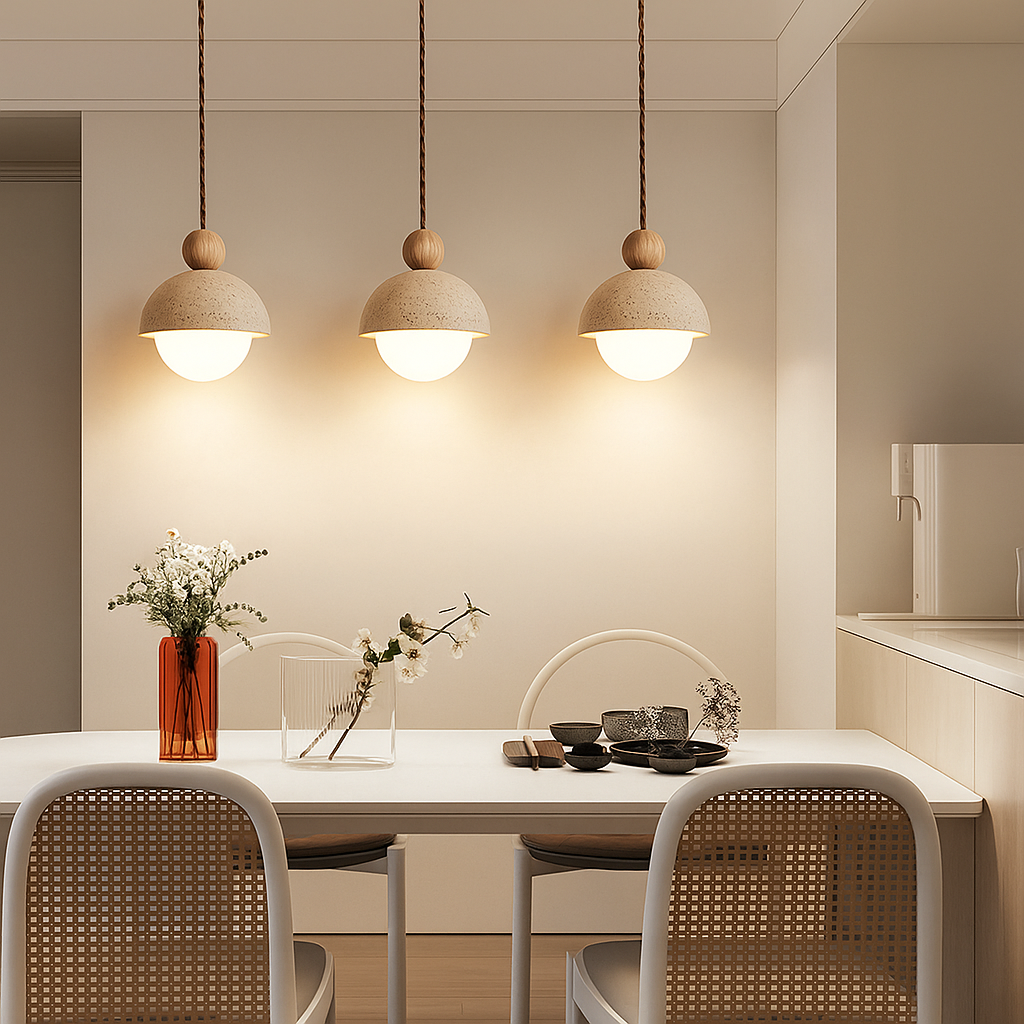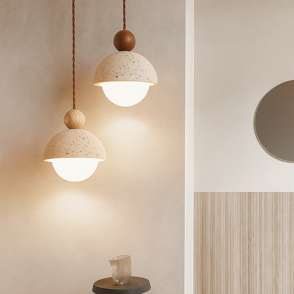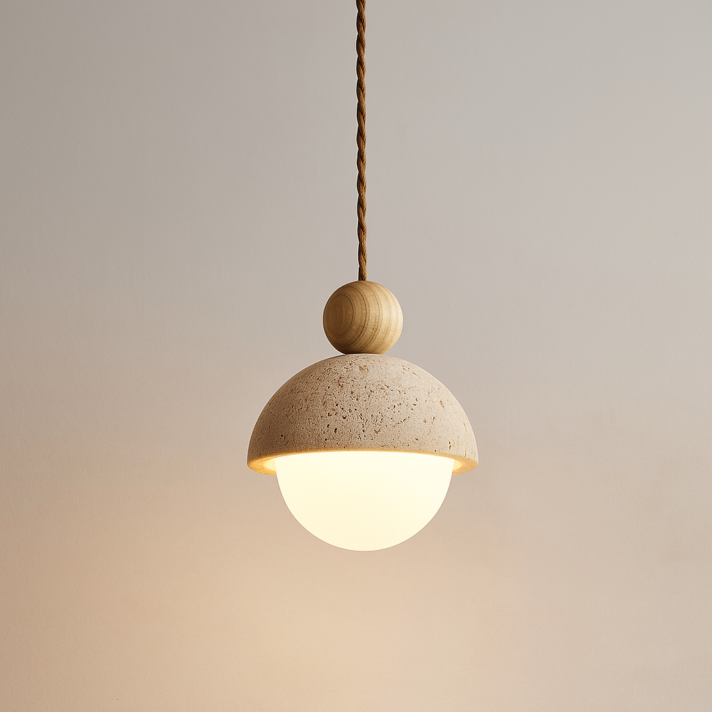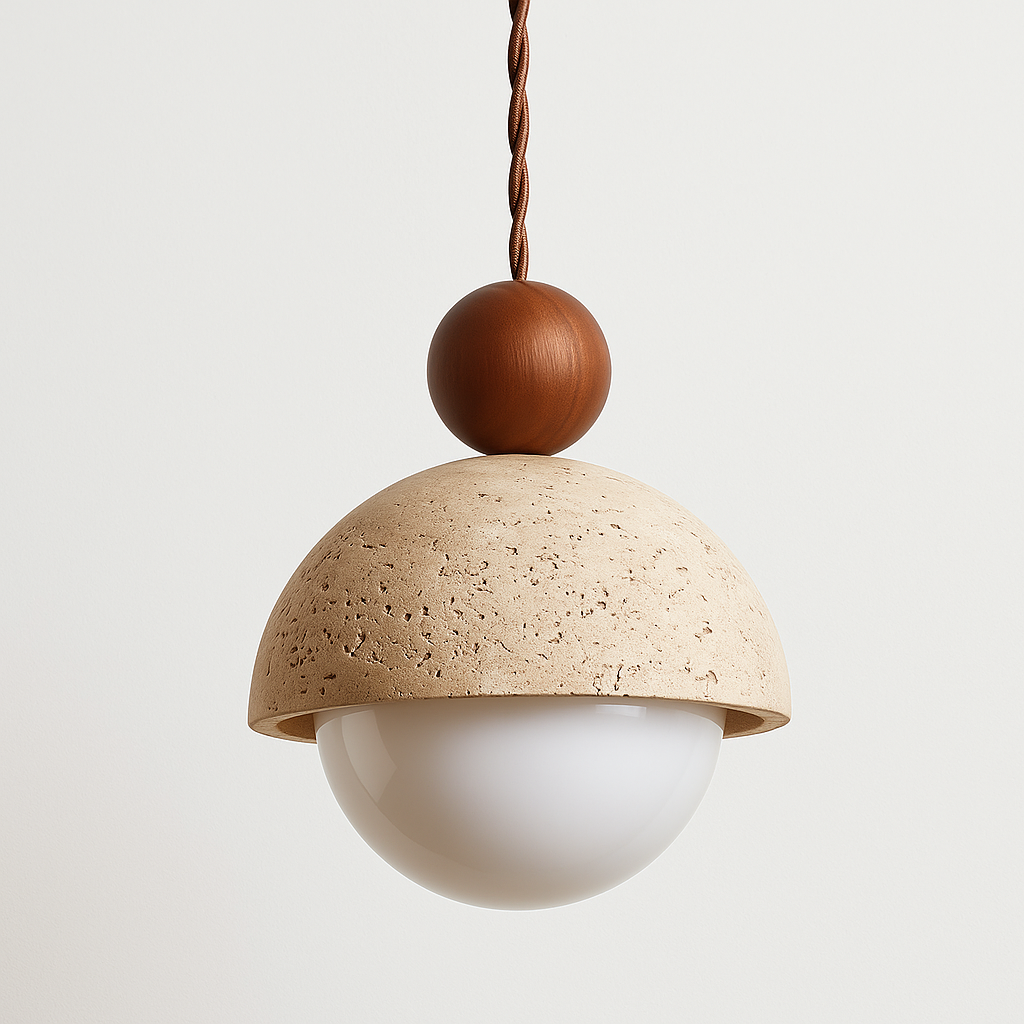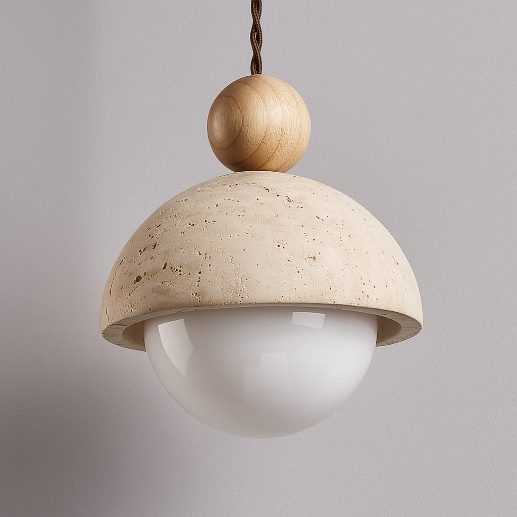 Palermo – Suspension en Travertin, Verre & Bois – Éclairage Naturel Élégant